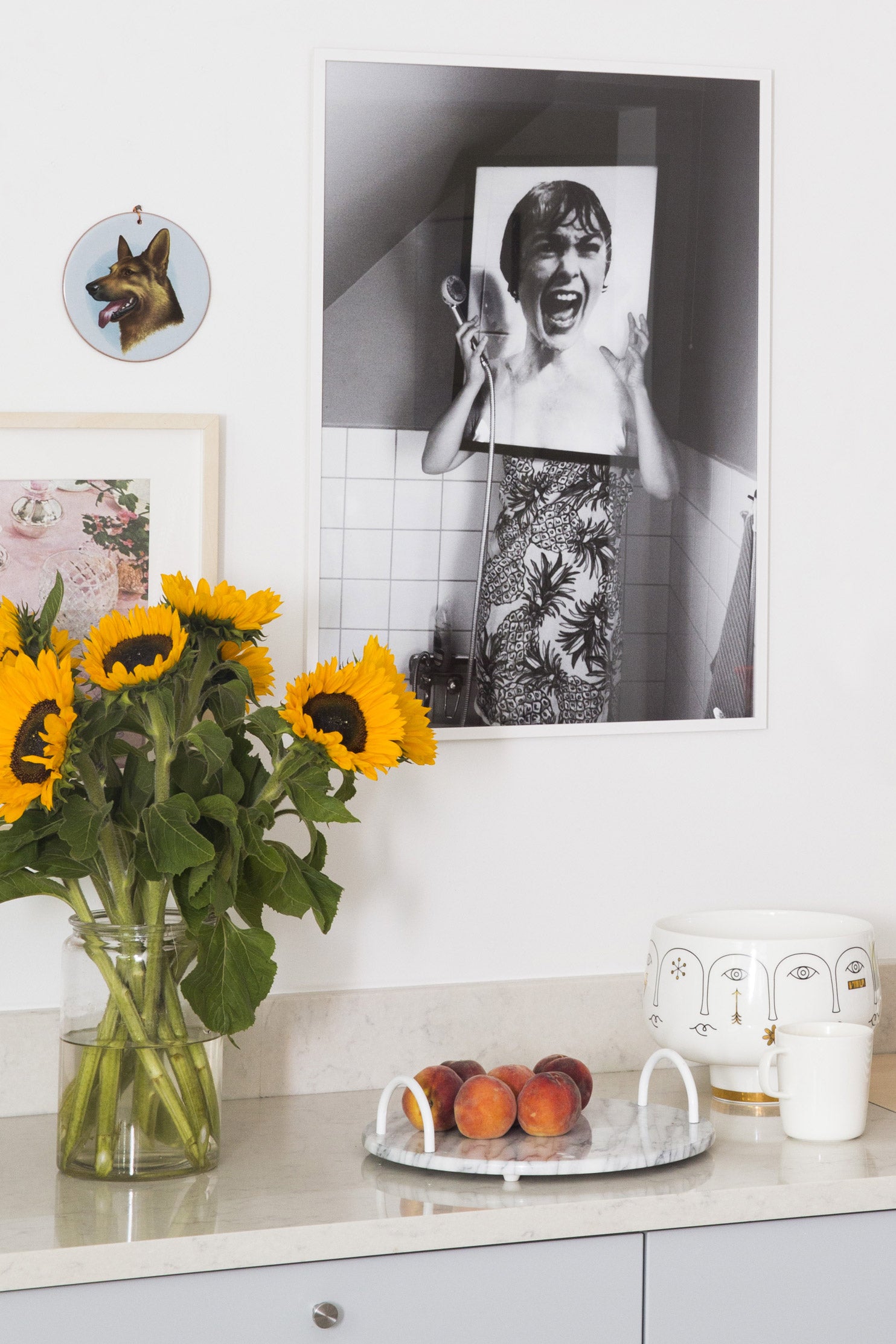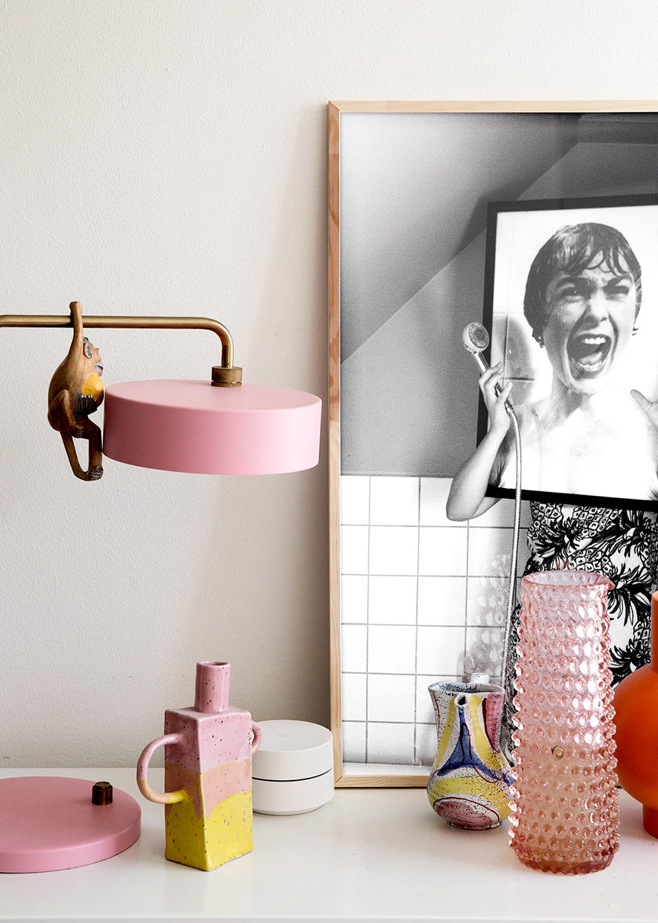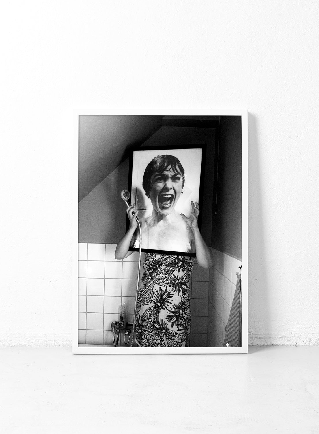 In the shower. With a Psycho poster. Some hang it as a nod to Hitchcock.