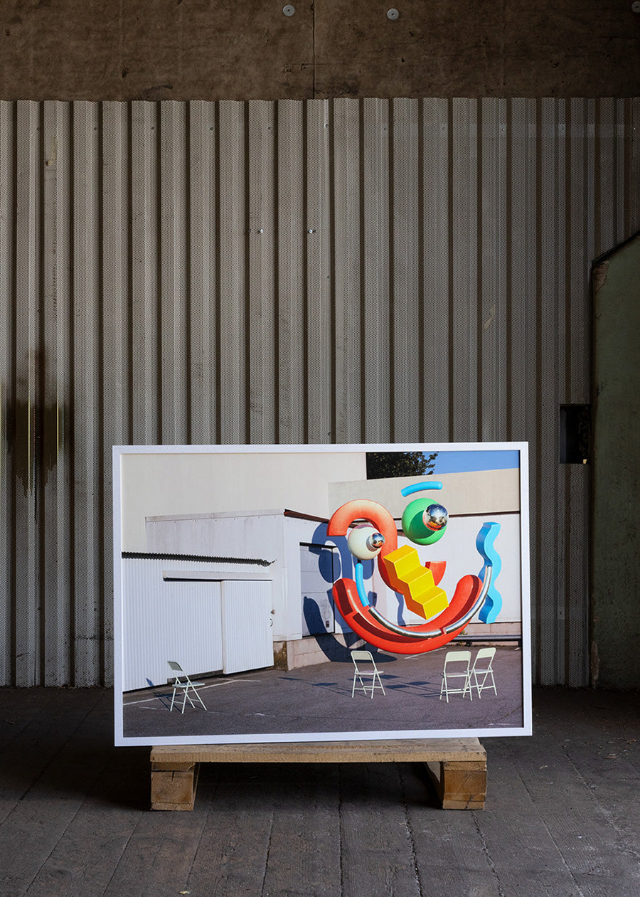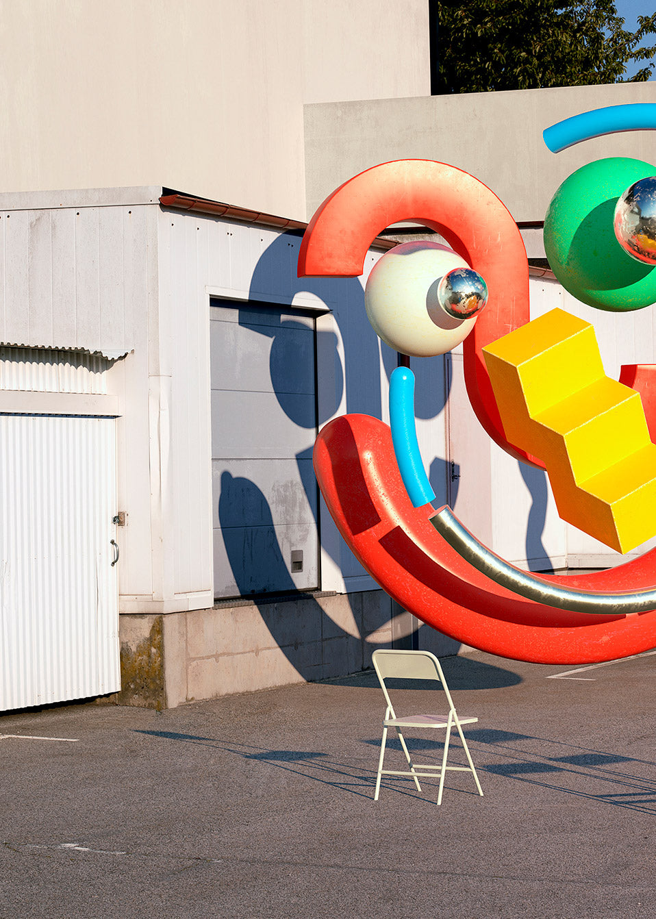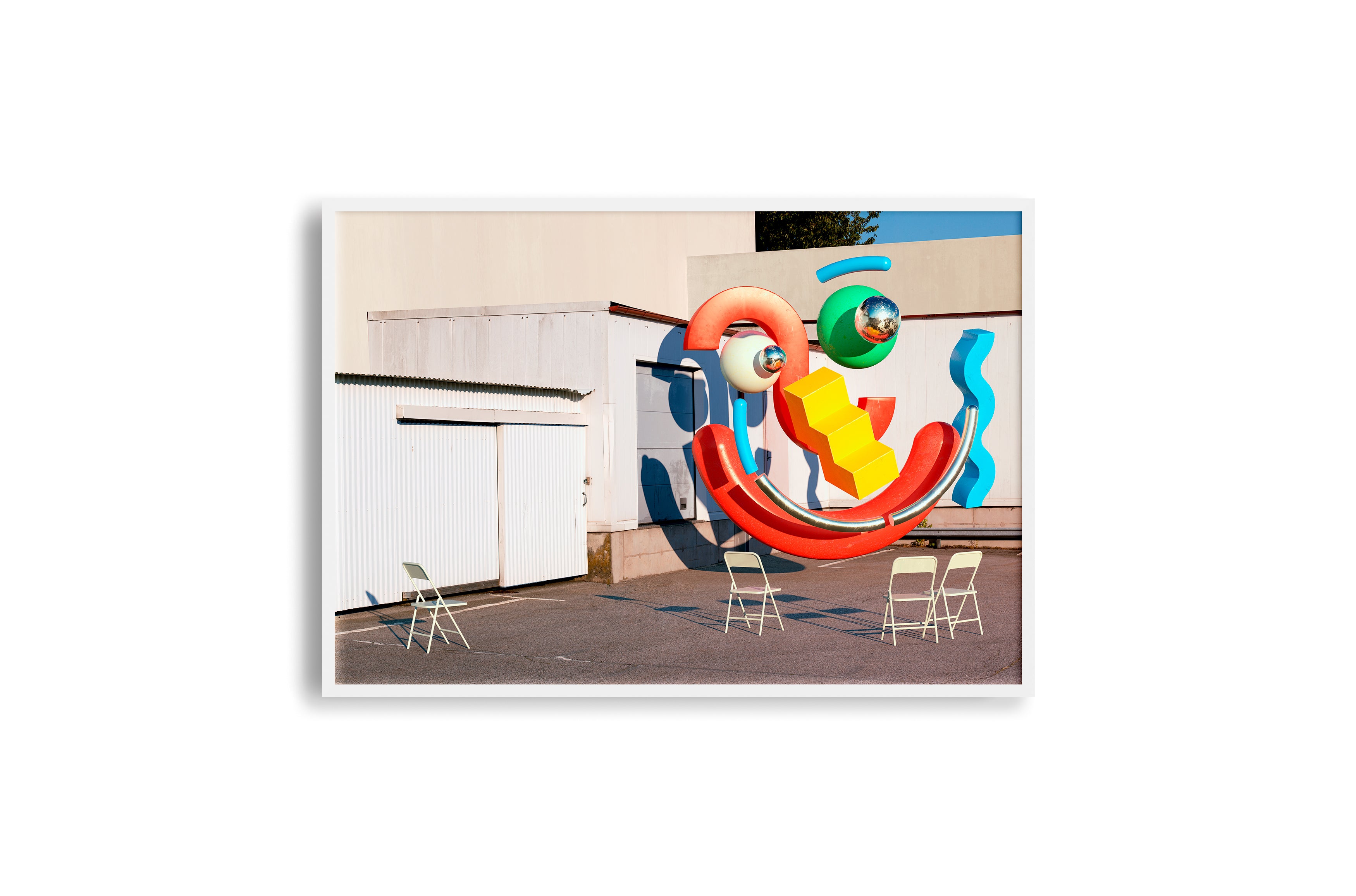 Bold color palette with clean geometry and pop tension
