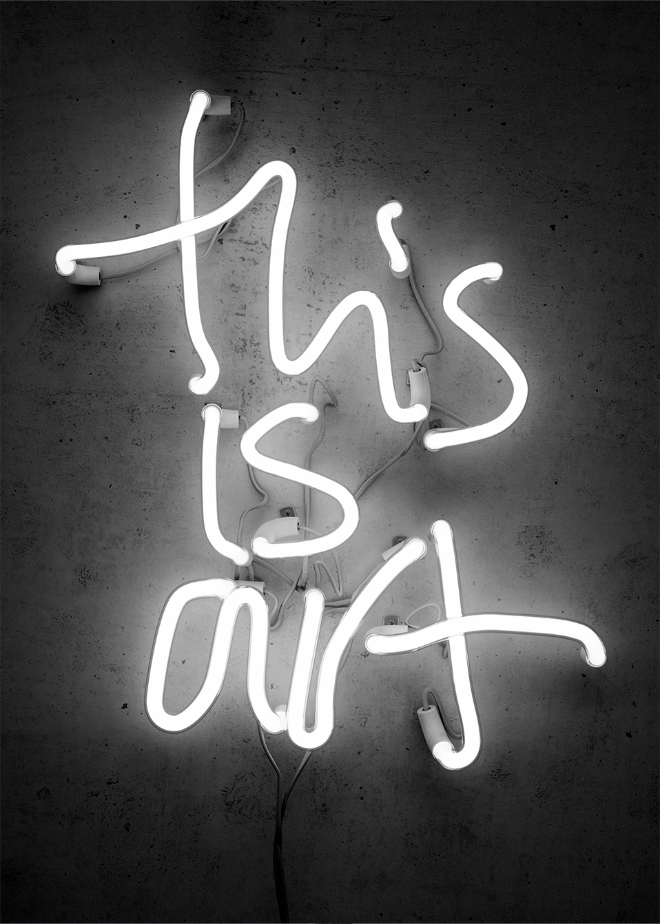 Photographic art print of a white neon sign spelling: THIS IS ART.